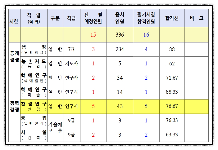 2025년도 제2회 광주광역시 환경연구사 지방공무원 임용 필기시험 합격선