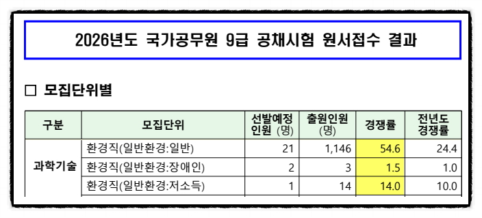 2026년도 국가공무원 9급 공채시험(환경직) 원서접수 결과