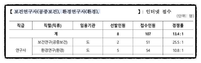 2026년도 제1회 전북특별자치도 보건연구사, 환경연구사 공무원 임용시험 접수현황