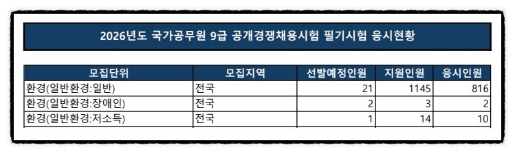 2026년도 국가공무원 9급 환경직 공개경쟁채용 필기시험 응시현황