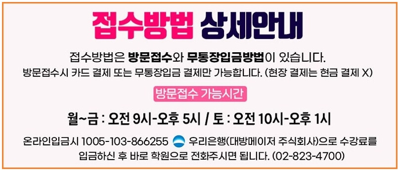 현장강의 수강료 : 45만원 (8주 완성 / 강의용 교재 8권 별도 제공)